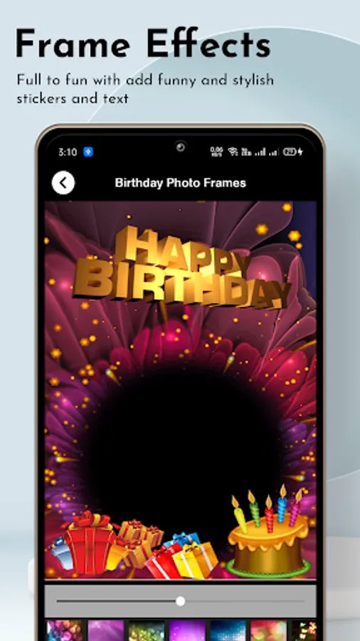 We have a collection of several floral and romantic photo frames that can be used as birthday frames to fixate your beloved’s photograph in it and wish them “Happy Birthday.” One's birthday is considered to be their most special day and you must fulfill their desire to make them feel that they are the center of all your attention. With the new photo frames that are available to you over our app, you can use them to create excellent pictures. You can then make use of these pictures for preparing a scrapbook to gift to your partner on one of the most special days of their lives.