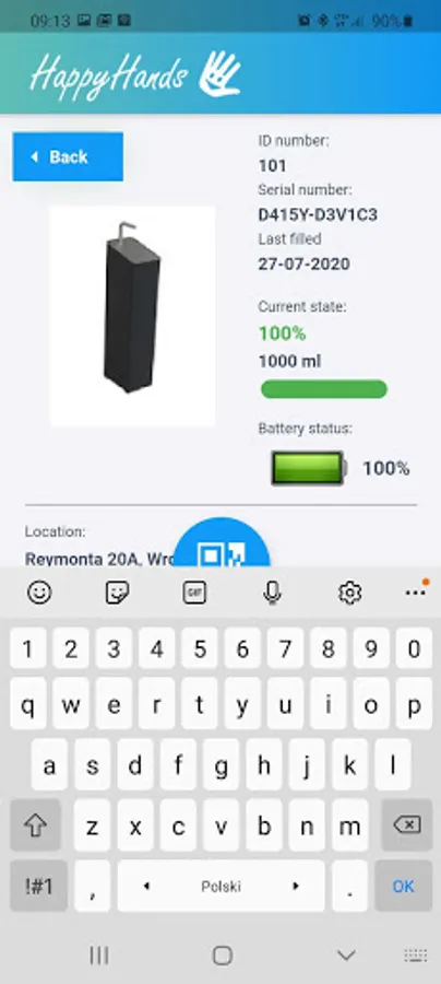 HappyHands is a back-office application designed for employees/partners who verify the level of filling of liquid dispensers of monitored sanitary facilities and sanitary facilities.