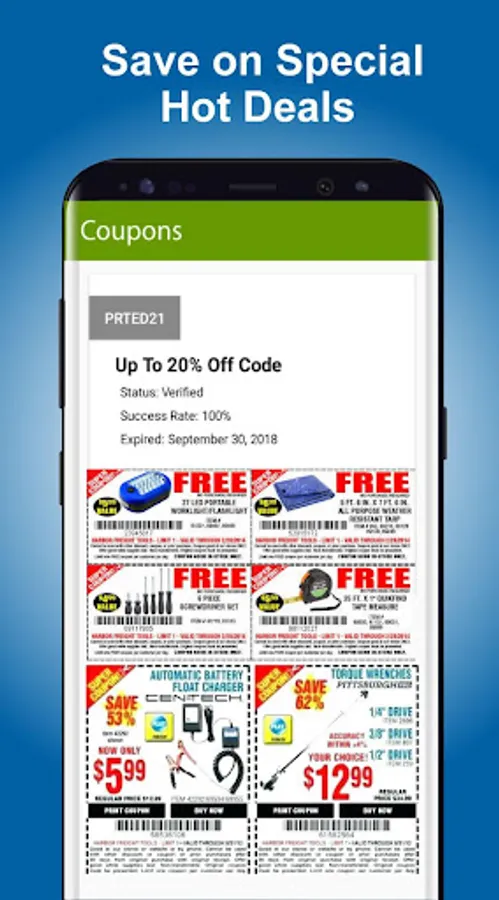 Why pay more? Here you will find free promo codes, hot deals and coupons for Harbor Freight Tools. Shop with big discounts is much more fun than ever. Never again pay unnecessary full price at Harbor Freight Tools. Start saving money on your shopping for hardware items with discount coupons at your favorite store today. All deals and coupons for Harbor Freight Tools are regularly updated. Always, check out this coupons for Harbor Freight Tools app for hot trendy deals so you will never miss it. Download coupons for Harbor Freight Tools and enjoy guilt-free shopping experience today.