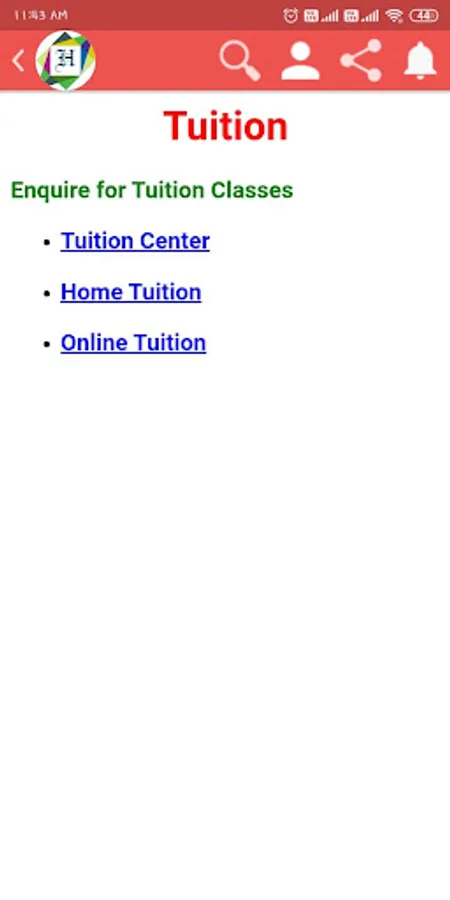 • Tuition enquiry link is available