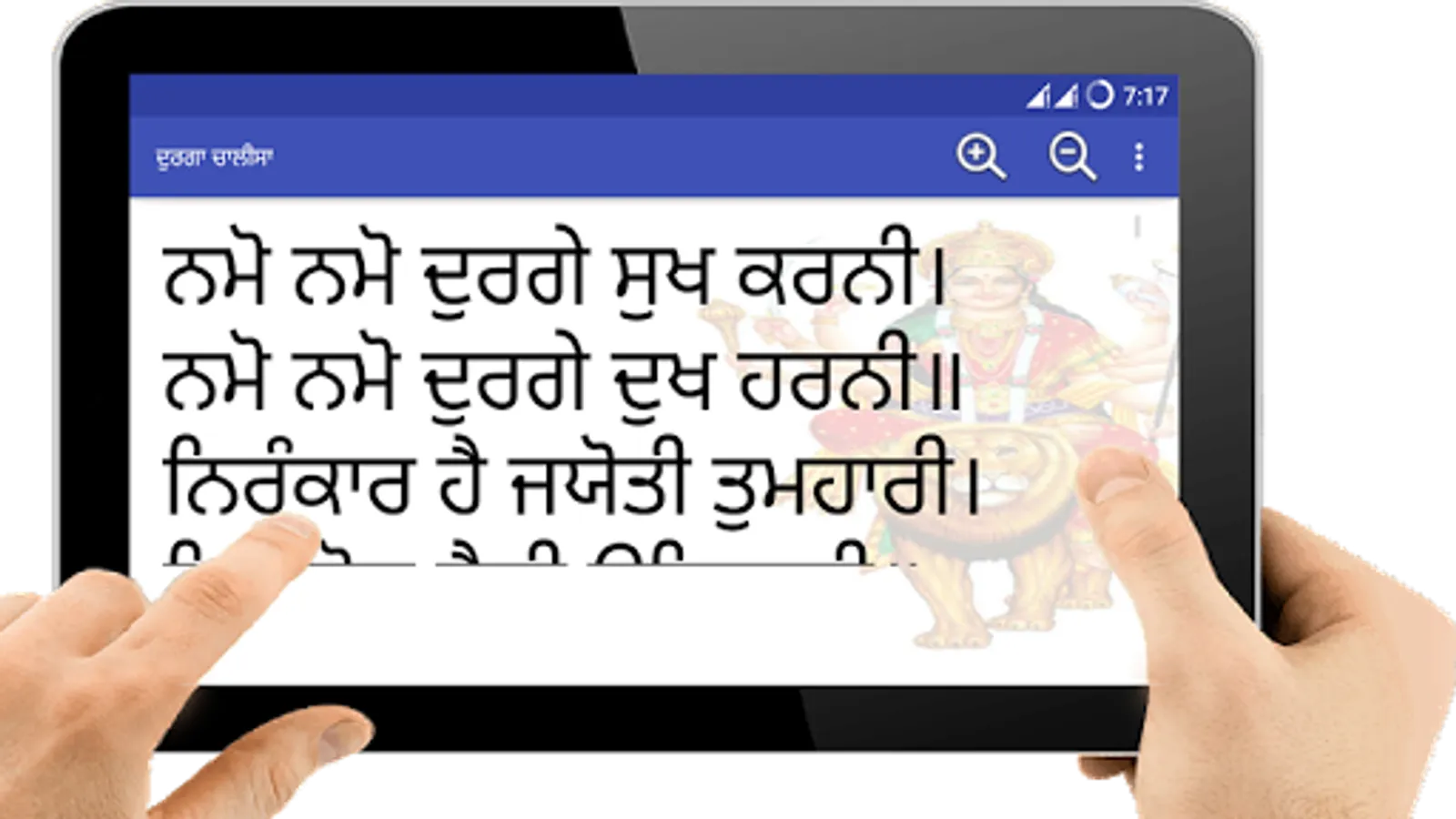 This app has an extremely simple and user friendly interface. Upon loading, you are immediately taken to actual Chalisa text. Just install and stay blessed with Durga Chalisa in Punjabi Language. Best Durga Chalisa Punjabi App dedicated to all Punjabi Readers.