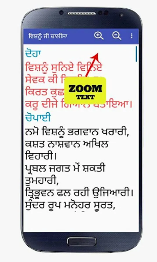 1. Zoom-in and Zoom-out Button for Read Chalisa