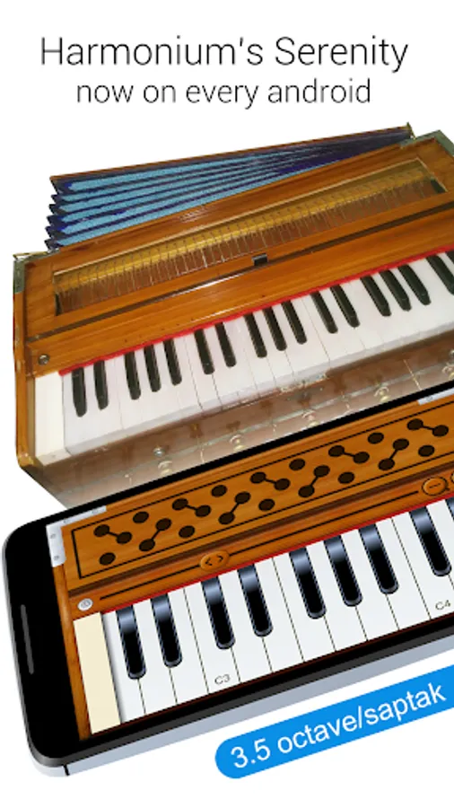 Whether you are a musician or a singer (who uses harmonium for practicing vocals), you can carry your harmonium in your device (android phone / android tablet). There are some places where you can’t take your real harmonium but you can carry this one everywhere.