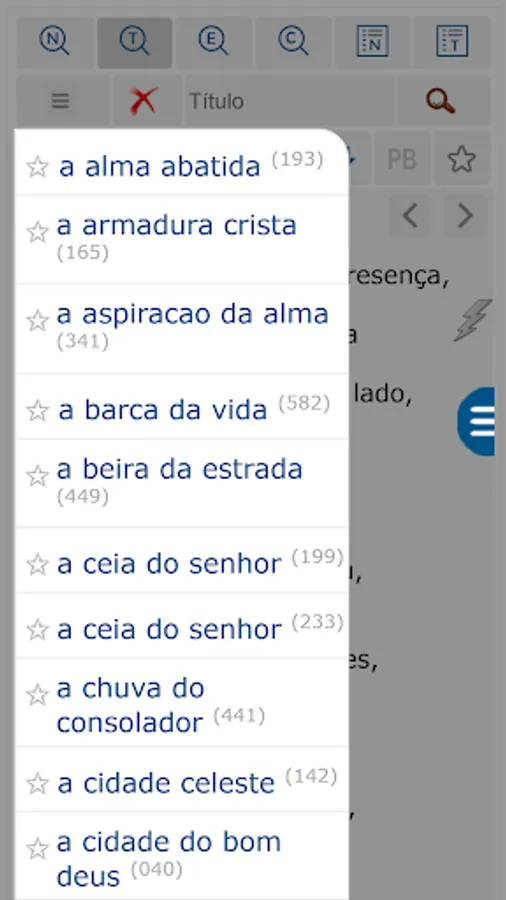 - In apps that contain hymnals, the search system by Number, Title, Chorus and Stanza works perfectly.