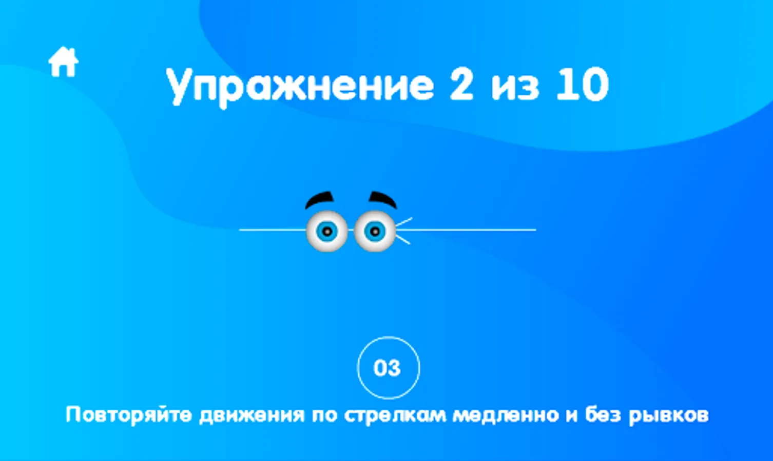 Attention! When performing exercises, do not need to look at the screen. Only the direction of the movement of the eyes is shown on the screen. Try to maximally move the eyes so that the muscles are in good shape. Do not overstrain. If you feel tired, close your eyes and rest.