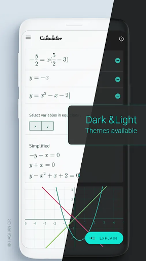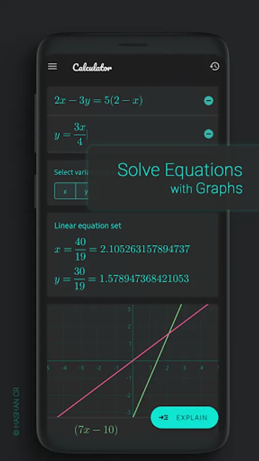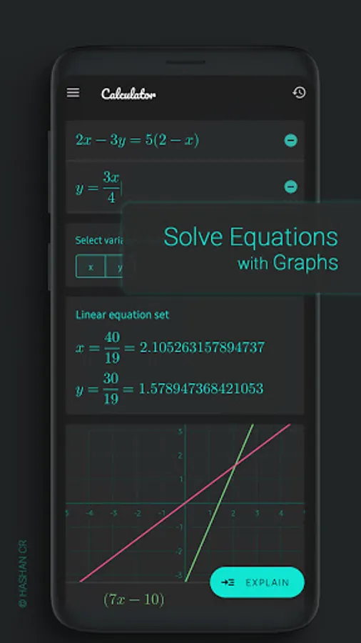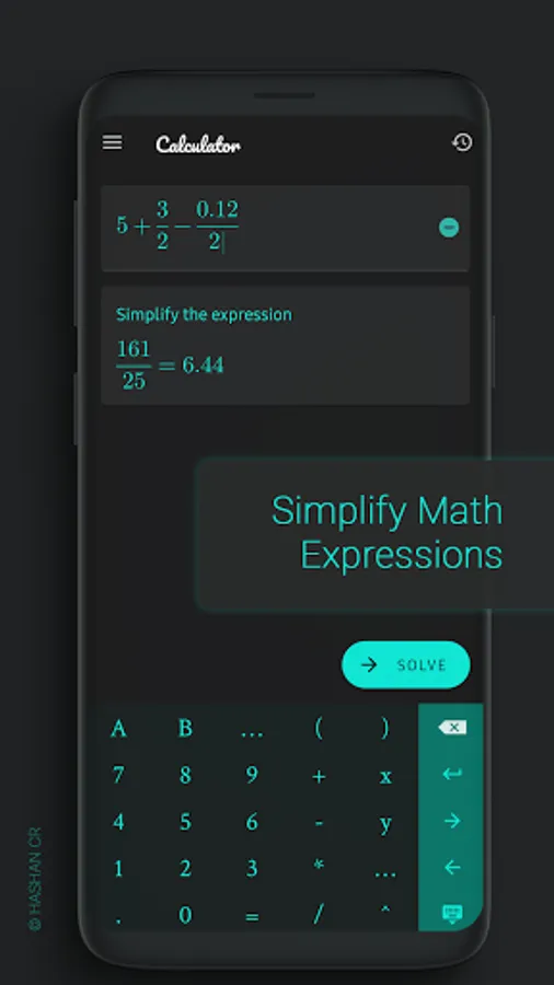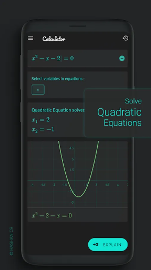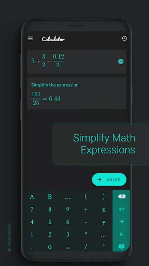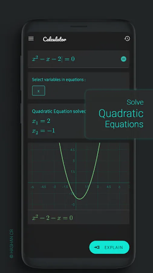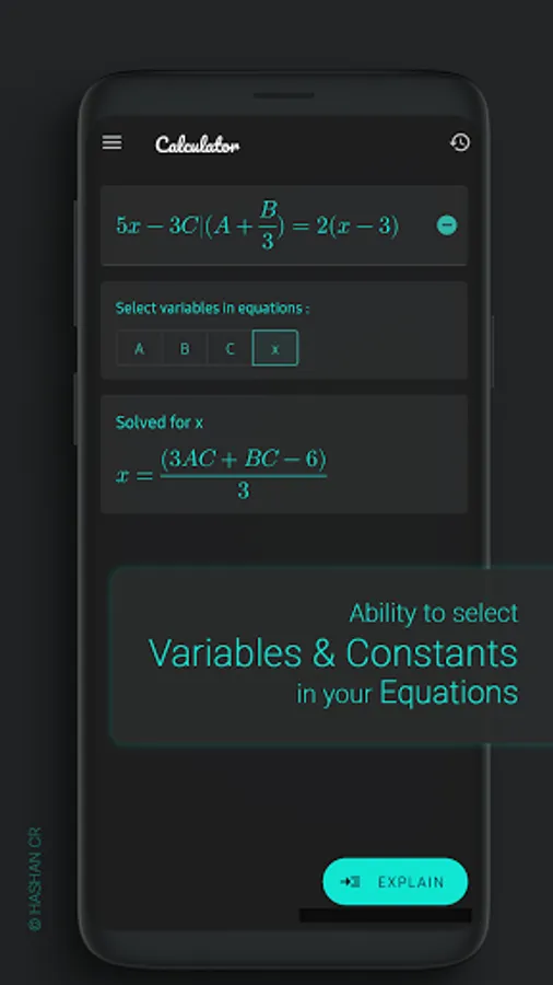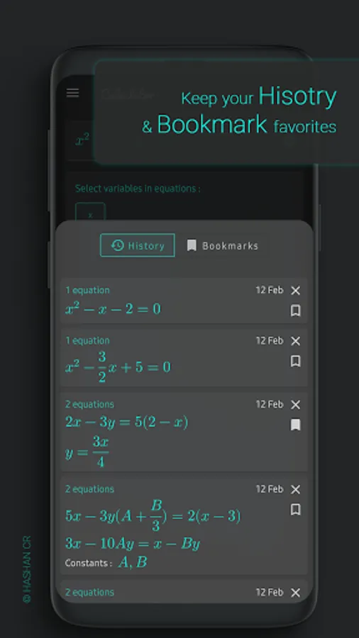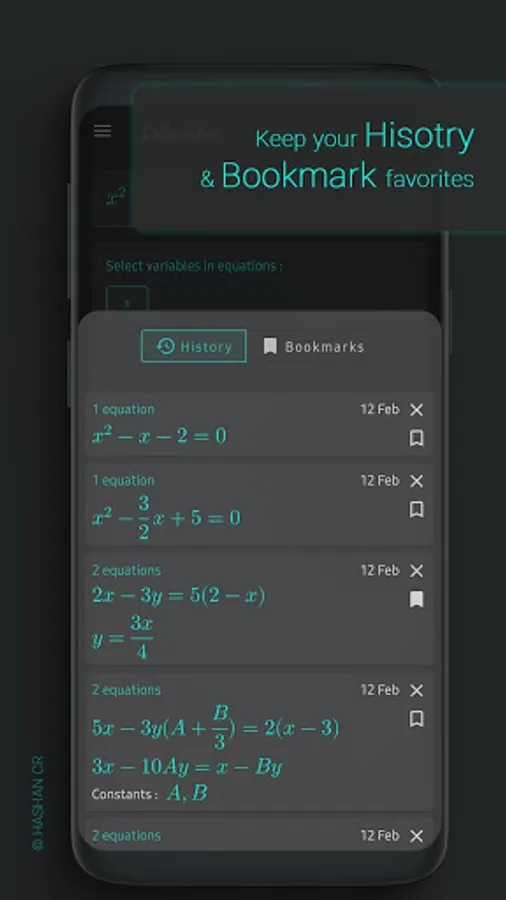 A lightweight app for solve / simplify equations, simultaneous equations & quadratic equations quickly. Use any number of variables & constants.