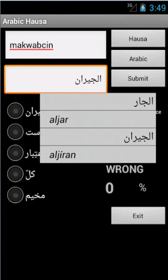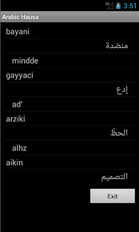 Hausa Arabic Dictionary – travel dictionary to translate Hausa to Arabic displaying a list of words in Arabic. The dictionary also translates from phonetic Arabic to Hausa. Copying a word from the translated list for a reverse translation can be used to find synonyms and to understand the broader use of the Arabic word in the Hausa language. Although the Hausa Arabic dictionary does not provide definitions or examples, the use of the translation software in this way provides you with a mechanism to better understand Arabic words in the Hausa context without the need for definitions. 30K references.