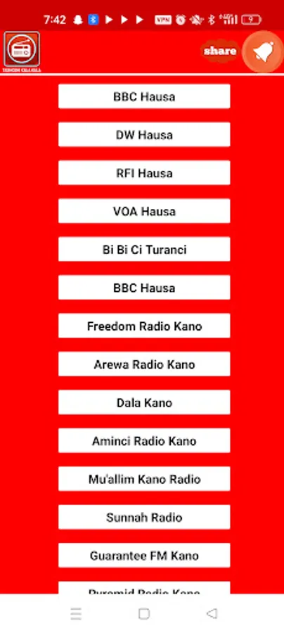 Hausa radio app help you listen to both local and foreign hausa radio like: bbc hausa, bbc shirin safe, shirin dare, shirin yamma, ZongoLink Hausa Radio, Wazobia FM, shirin hantsi, bbc live, Liberty Radio Hausa, freedom kano, freedom jigawa , freedom kano, voa hausa, Deutsche Welle Hausa or dw hausa, rfi hausa, freedom radio, dala fm, Rahma Radio, da sauran su.