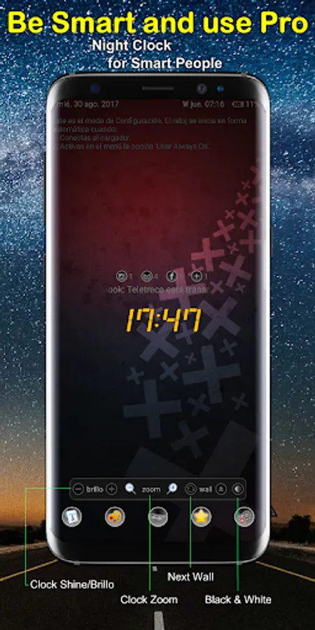 With Night Clock Pro you can keep the time always on display while you sleep avoiding the annoying glow on your eyes... always on Night or Day.