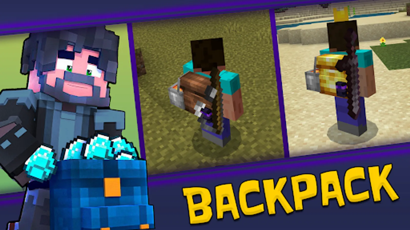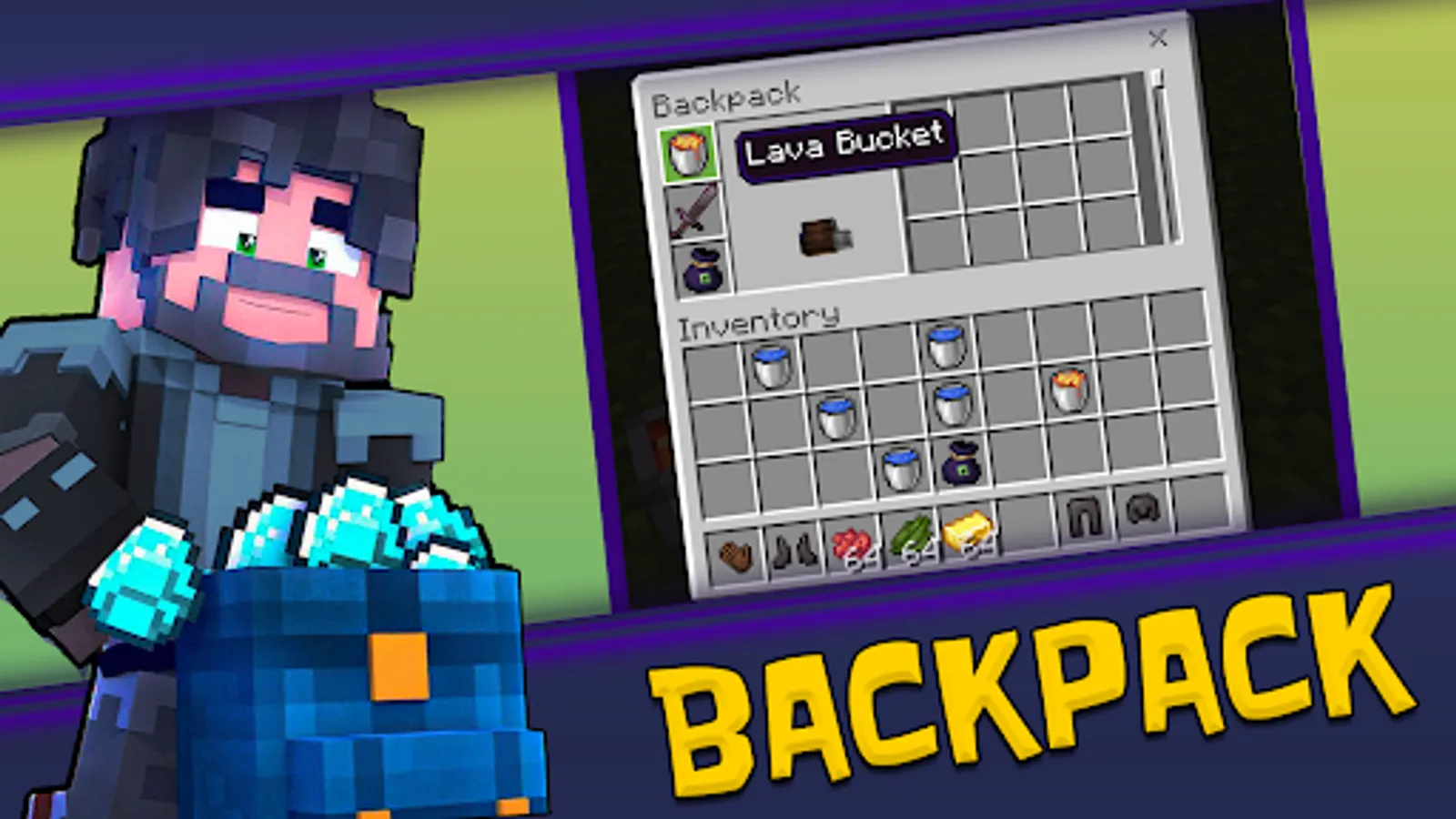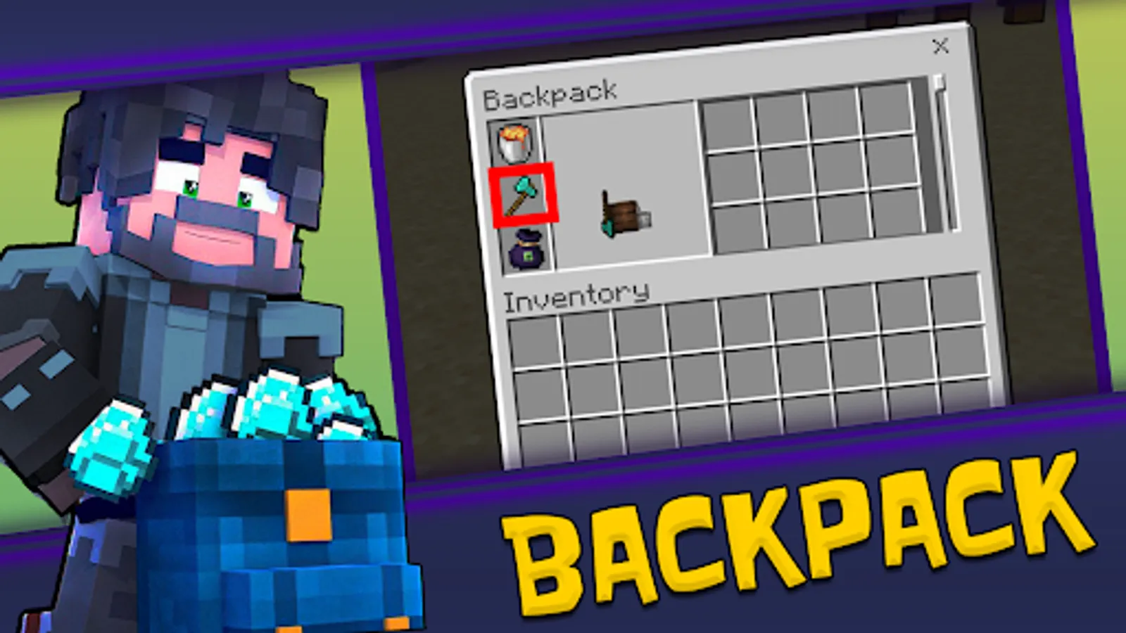 Backpack Mod for Minecraft PE gives different types of bags with many colors and designs you will find thanks to these utk mc-addons. Use them to increase your inventory space and prove to the whole mani craft build city that you are not just a craftsman, but a crafting hero! Transfer absolutely any mineblocks with our happymod map addons for mc!