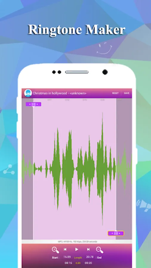 Cut the best part of your audio song and save it as your Ringtone/Alarm/Music File/Notification Tone.