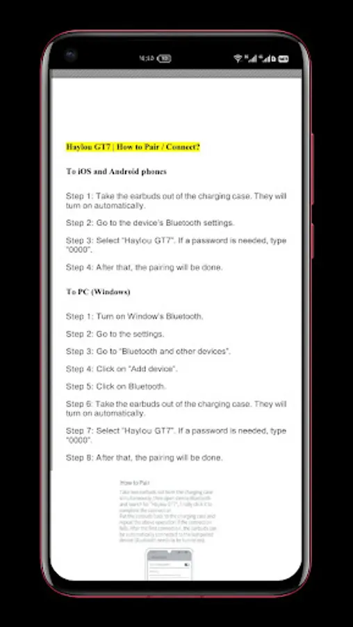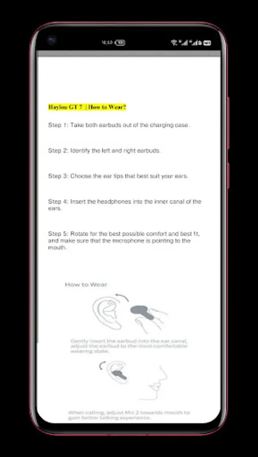 b. Pairing: Once charged, open the charging case and remove the earbuds. They will automatically enter pairing mode. On your device, enable Bluetooth and select "Haylou GT 7" from the list of available devices. Once connected, you're ready to enjoy your wireless music experience.