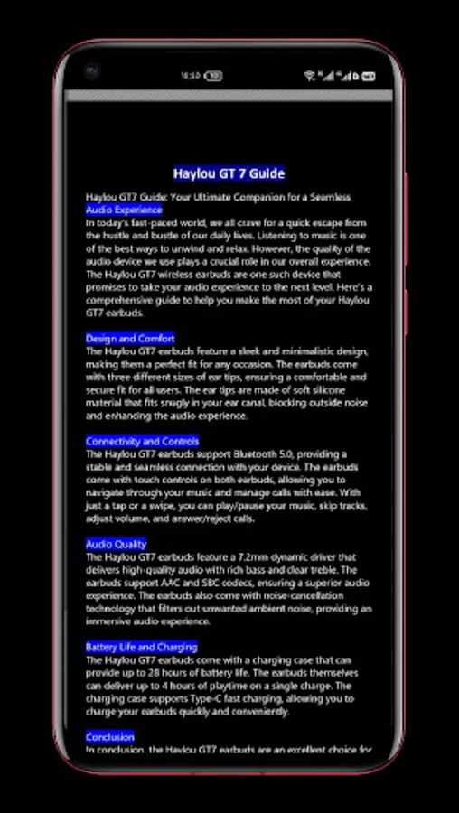 The Haylou GT 7 wireless earbuds offer a remarkable audio experience at an affordable price point. With their advanced features, easy setup process, touch controls, extended battery life, and superior sound quality, these earbuds are a fantastic choice for music enthusiasts and those who value convenience. By following this guide, you can unlock the full potential of your Haylou GT 7 and enjoy a truly immersive audio experience.