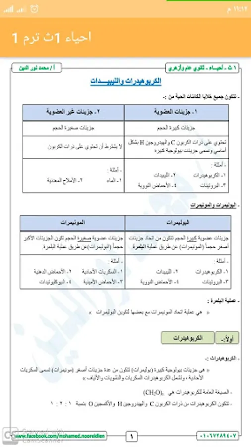 مذكرة احياء الصف الاول الثانوي Screenshots