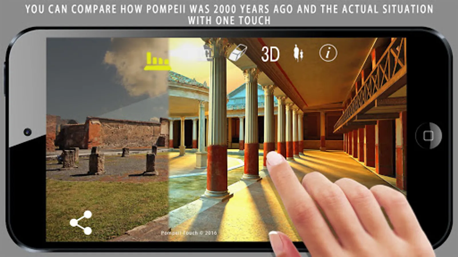 This app gives people possibility to make a comparison between how Pompeii is and how it was before eruption of Vesuvius in 79 AD