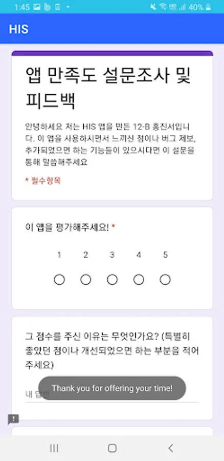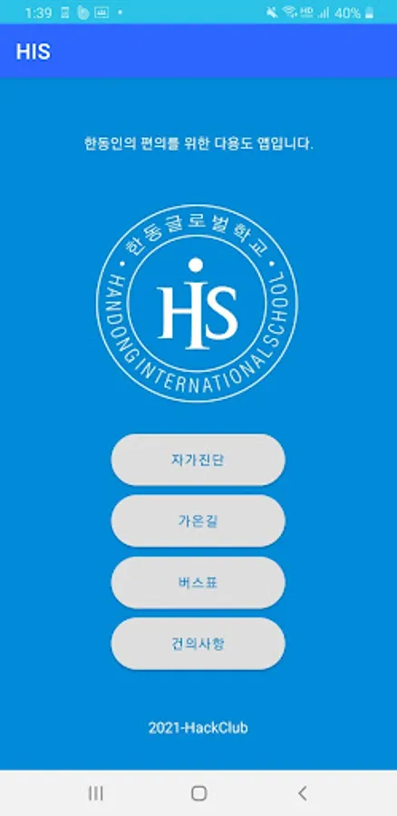 In the app, you can see a self-diagnosis site that needs to be done every morning, a Gaon-gil site that informs you of lost and found, meals, and a route map and timetable of the 302 bus. Feedback and suggestions are always welcome. We appreciate your help in developing the app.