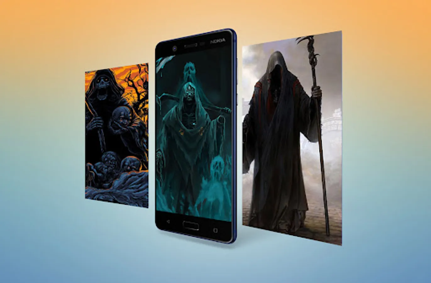HD grim reaper wallpaper, use this app as a wallpaper home or lock screen for your phone , just swipe and enjoy them and share your favorites on social media, You will be presented with only grim reaper wallpaper that will perfectly look like