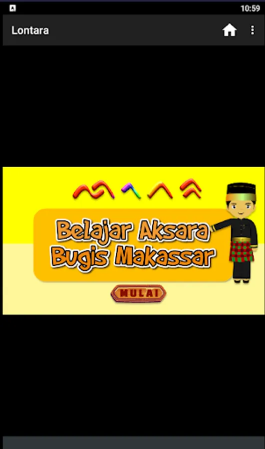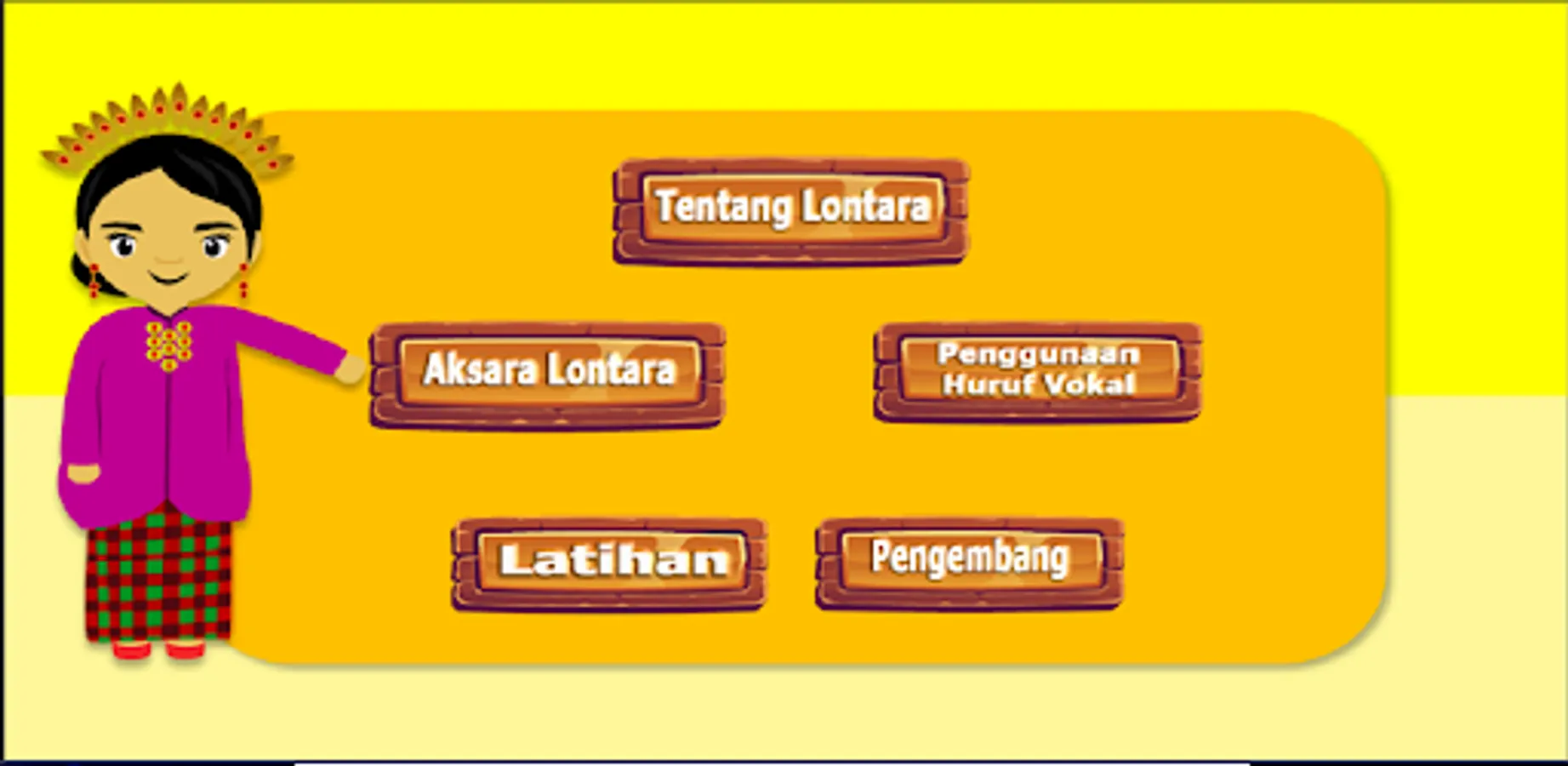 This application aims to help elementary school-aged children to understand and be able to read the Bugis lontara script. In this application there are 23 features of lontara characters and how to use the vowels. In addition, it also provides an exercise feature to test the extent of understanding after studying this Lontara script