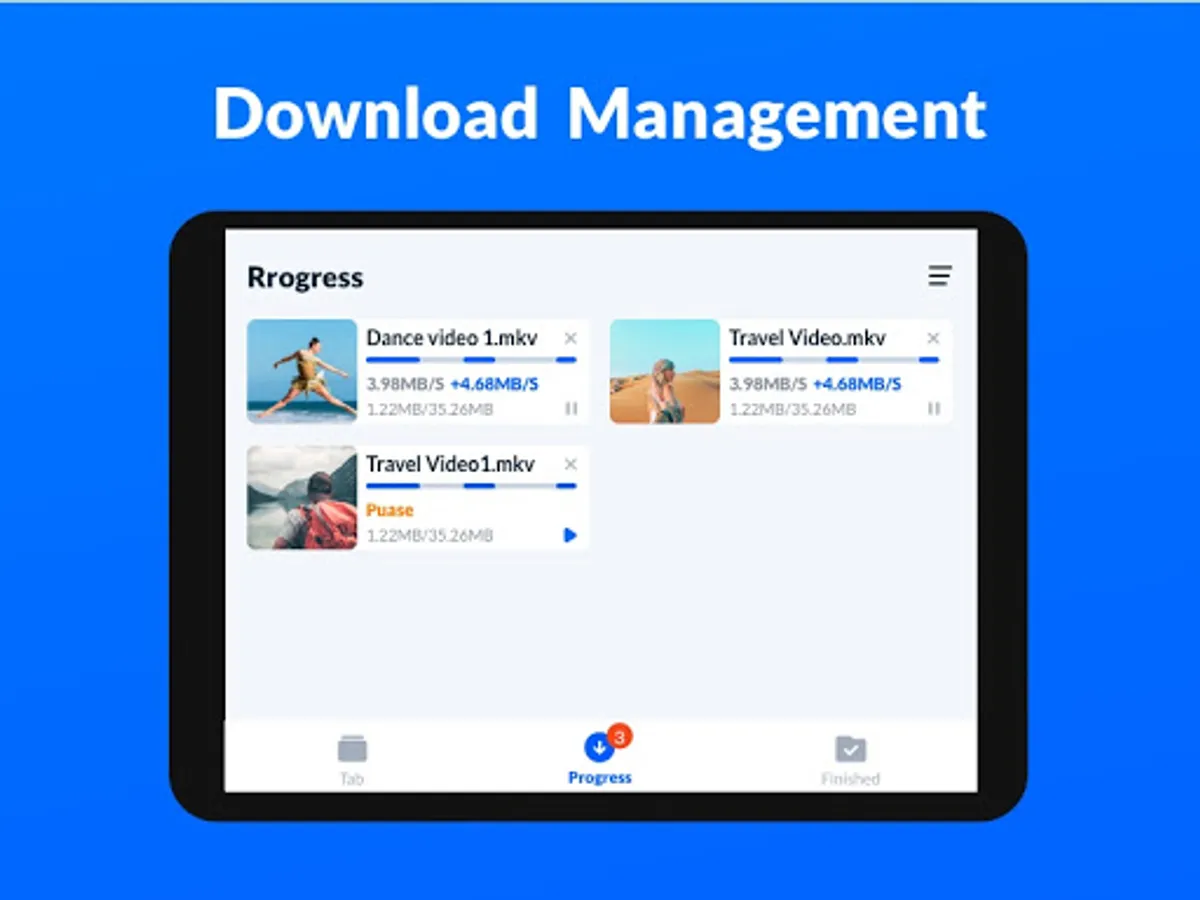 You can download several videos simultaneously; pause and resume downloads; download videos in the background; change the download location. What a smart download manager!