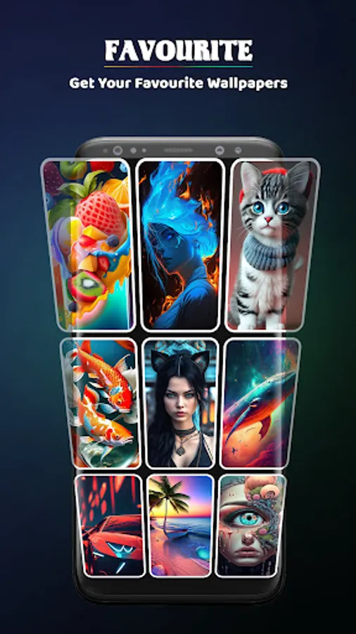 With our app, you can choose from various categories, including Nature, Animal, Abstract, Game, Anime, Cartoon, Neon, Minimal, Vehicle, Girls and more. AI-generated wallpapers offer a diverse range of options to suit every taste and preference.