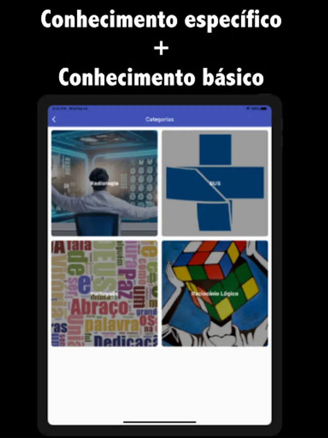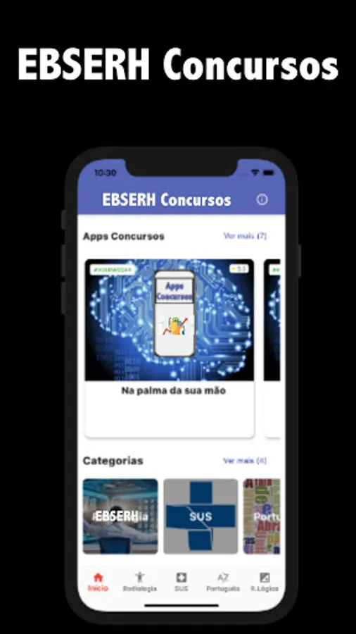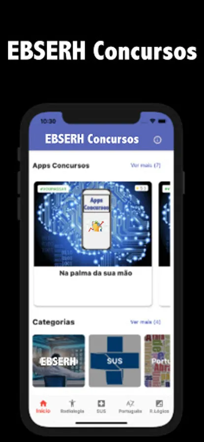 The App EBSERH Concursos has questions of: Legislation of EBSERH, SUS, Portuguese and Reasoning Logic.