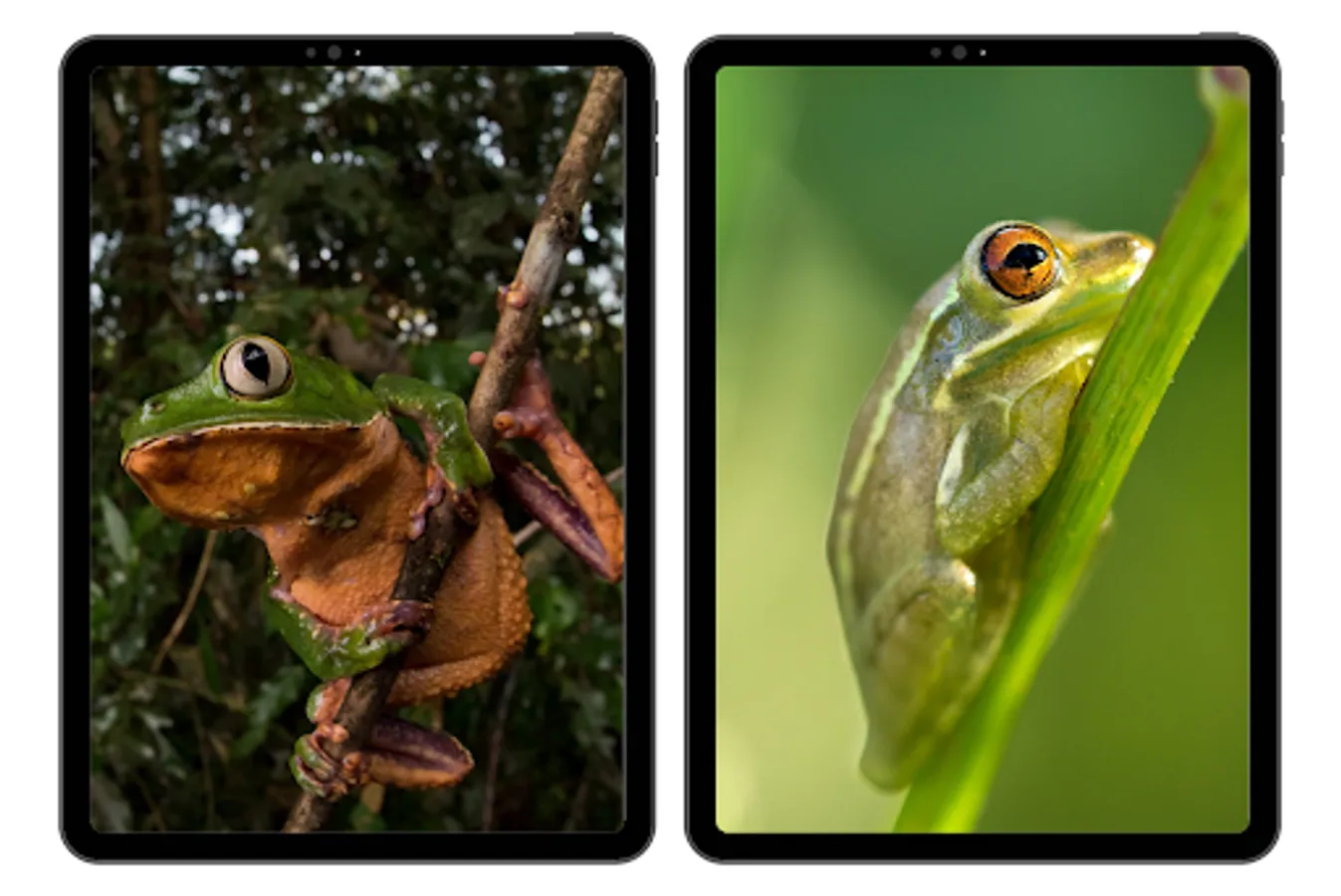 Everyone has seen a frog at least once in their life. Where the frog lives In water, on land, and in trees, they are spread all over the world, except in Australia and the surrounding islands. Characteristics: Their bodies are bare and stocky. They don't have tails. Its long hind legs are suitable for jumping: adult's lung and larvae gill respiration. We tried to collect unique wallpapers in our application, and I hope you like them. If you want the best frog wallpapers in our opinion in this application, remember to share them with your friends.