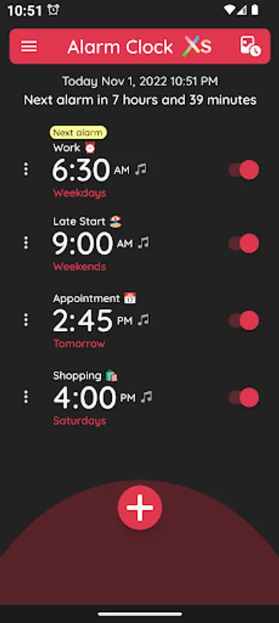 Alarm clock Xs is a simple yet functional alarm clock app with extreme functions. It is designed to add, edit and delete multiple alarms easily. Wake up in time and setup reminders for your daily tasks.