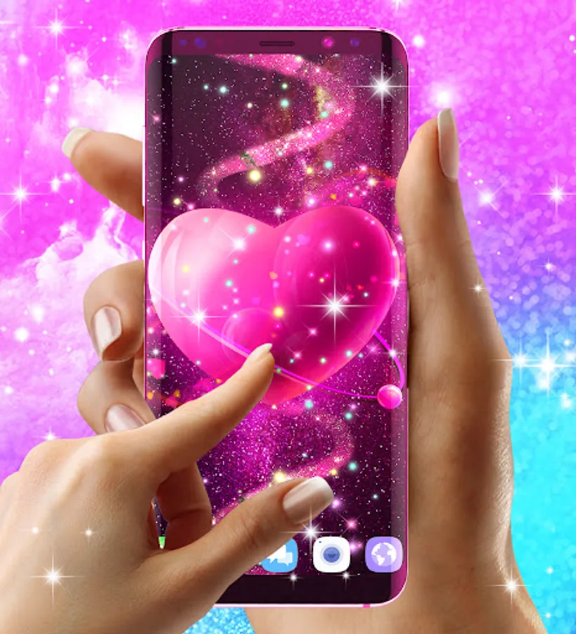Our latest addition to HD Wallpaper themes portfolio. Inside this live wallpaper you will find heart shaped elements and colors that make you think about the entire galaxy with pink and blue colors or even rainbow shiny glitters.