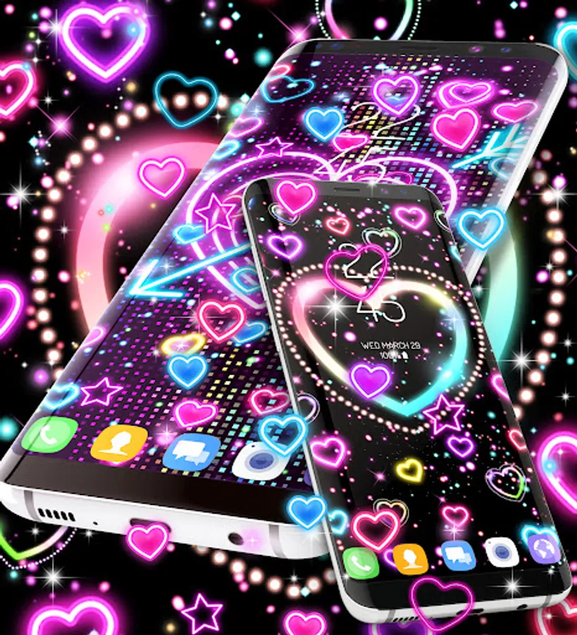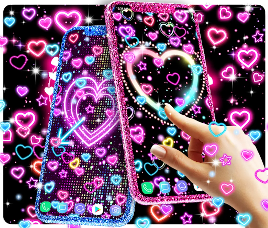 Glowing neon hearts will fall over your screen. This is such a cool app you will like it for sure! The hearts come in various colors like pink and blue with glowing borders and disco colors with luminous styles.