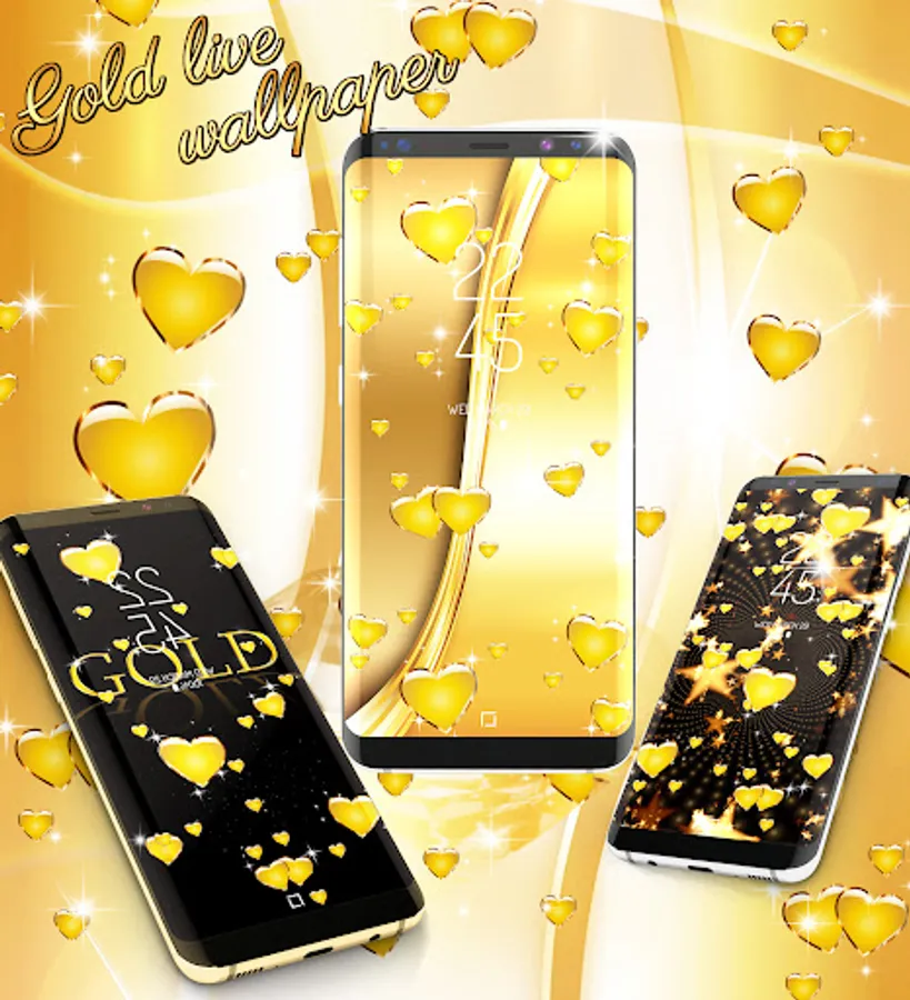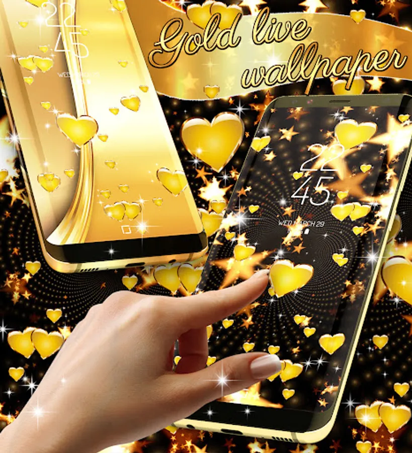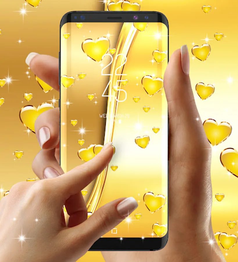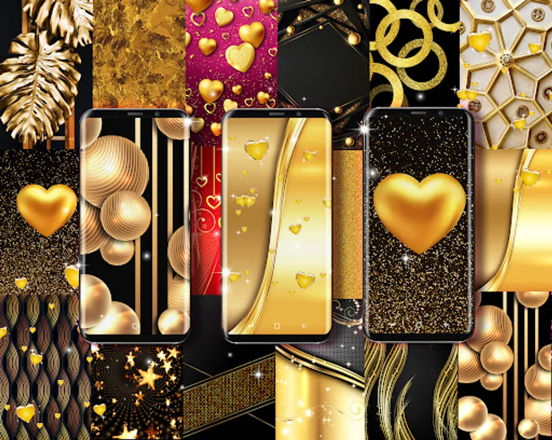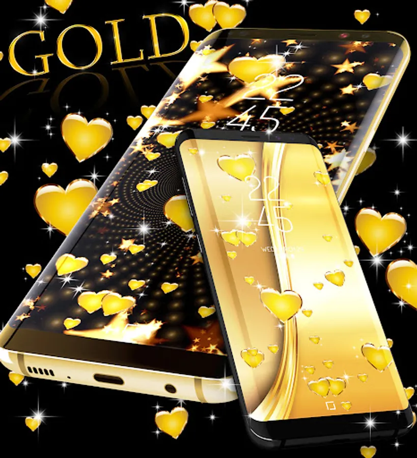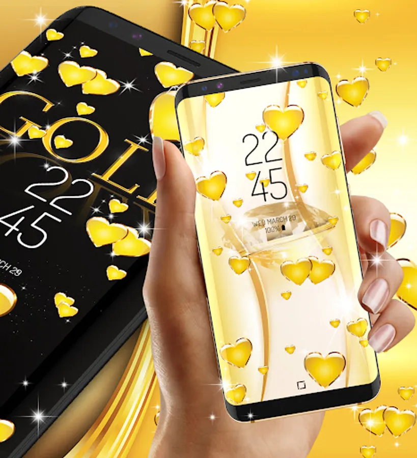 Animated golden hearts will fall over your screen, in the background will find different golden designs, glitter or black.