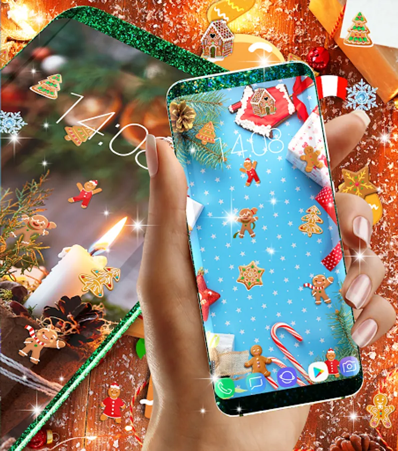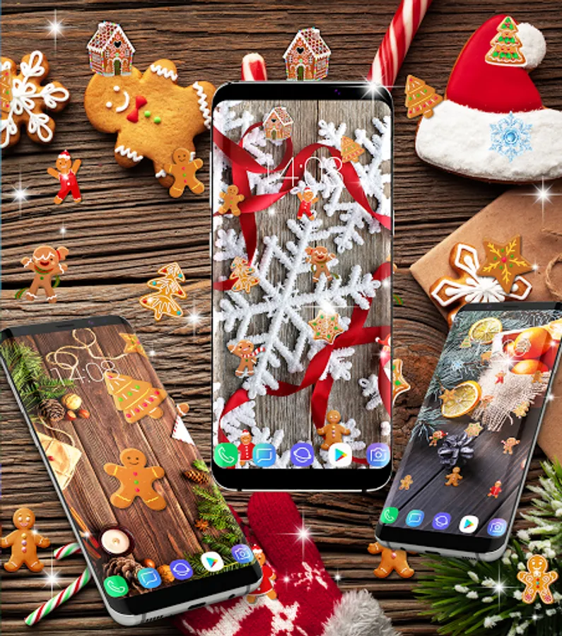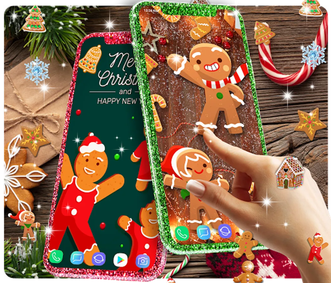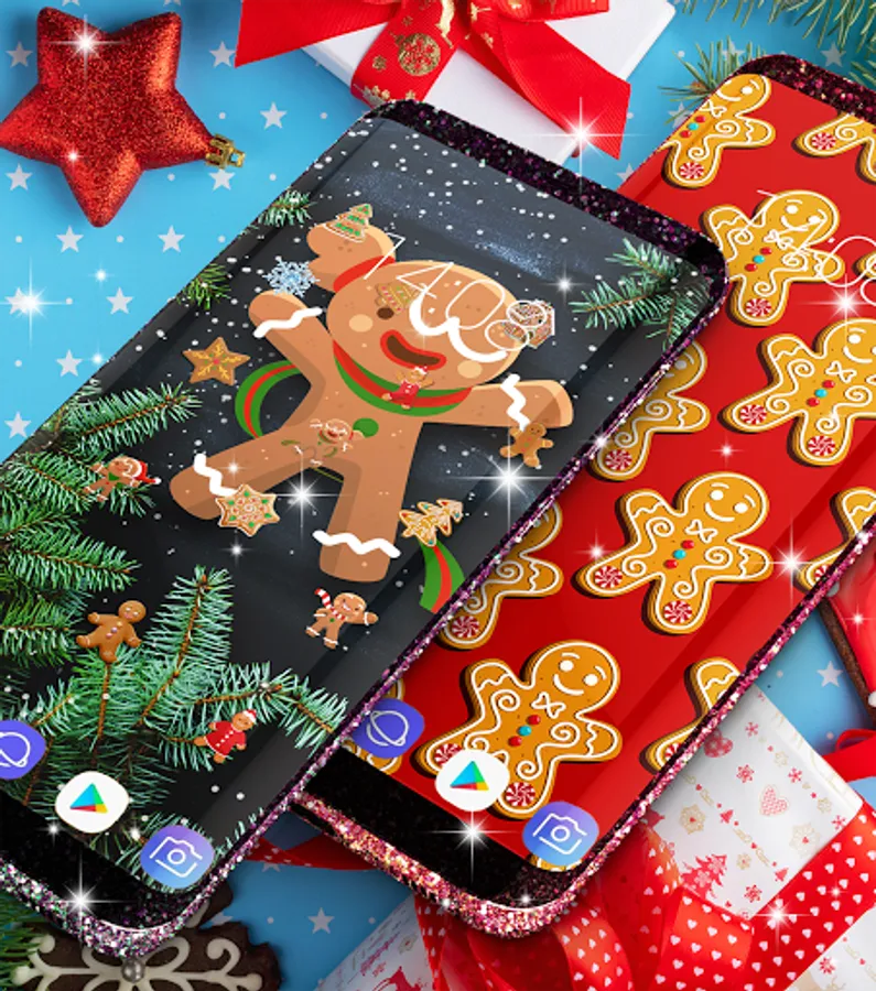 Gingerbread and christmas designs that will make your background very cute and funny. Winter and christmas designs packed all in one beautiful app.