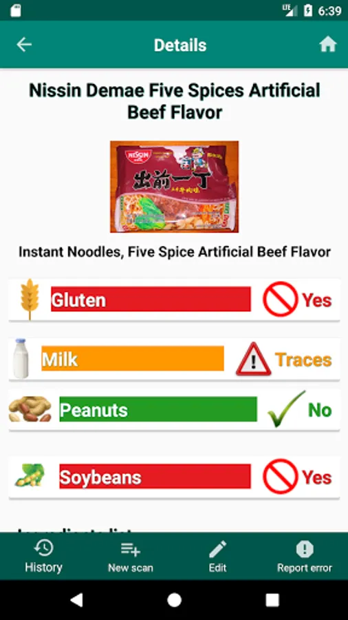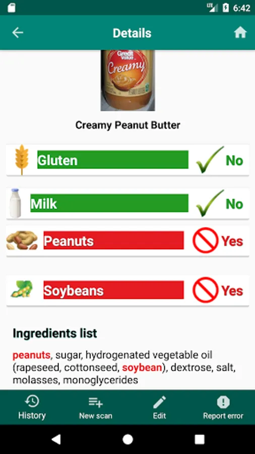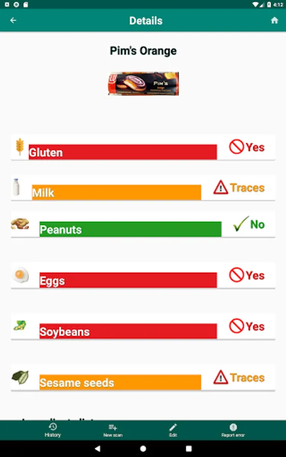 Just scan the barcode of the product or enter it manually and it will tell you if you can or can’t consume it with the food allergies or intolerances you have.