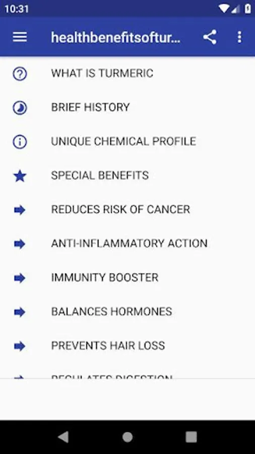 The app contains the most up to date information on Health Benefits of Turmeric.