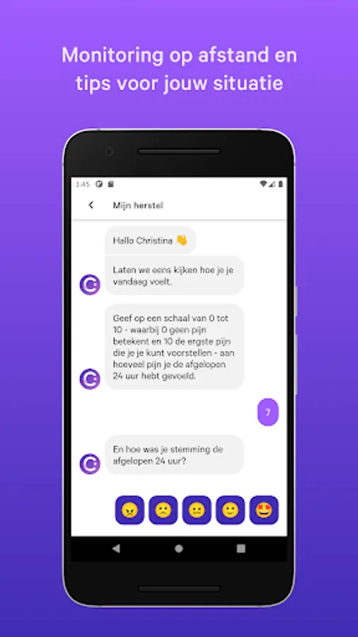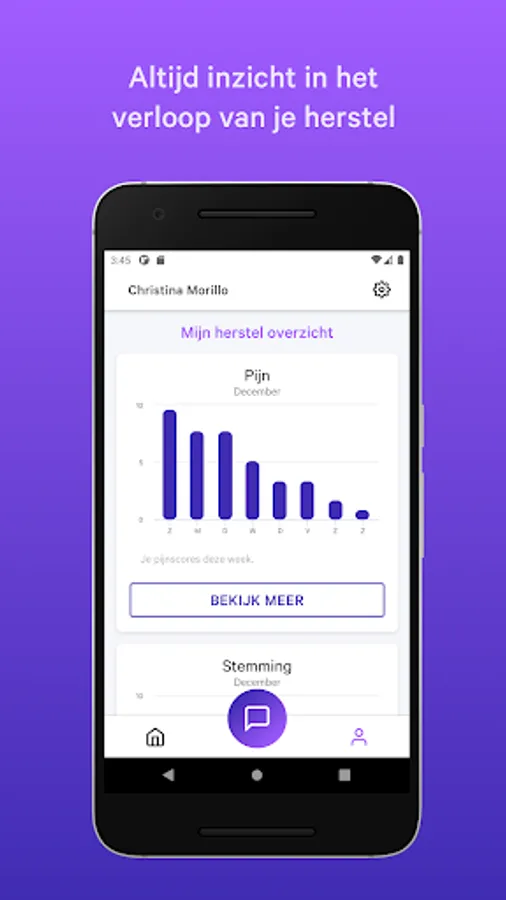 Through regular check-ins with Caro, you can track your mood and other recovery statistics and see how you heal over time.