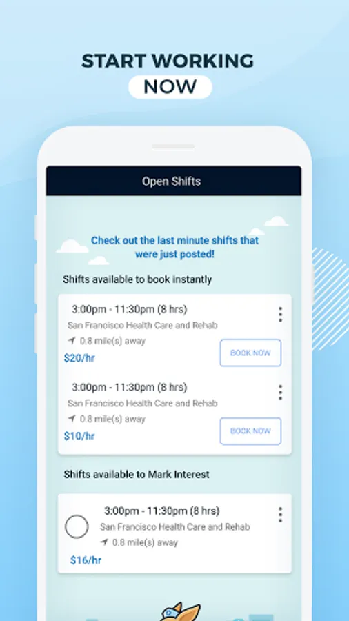 Book Your Preferred Shifts: We offer AM, PM, NOC, and custom shift schedules, so you can book the shifts you want.