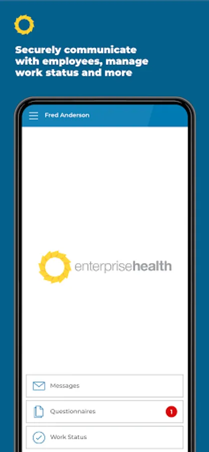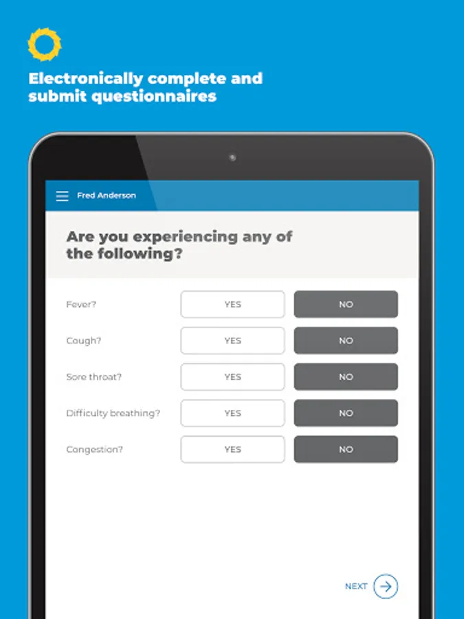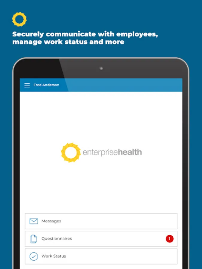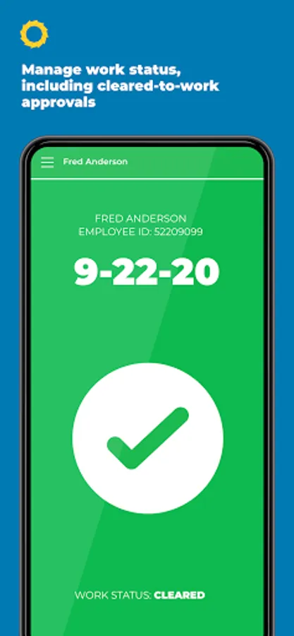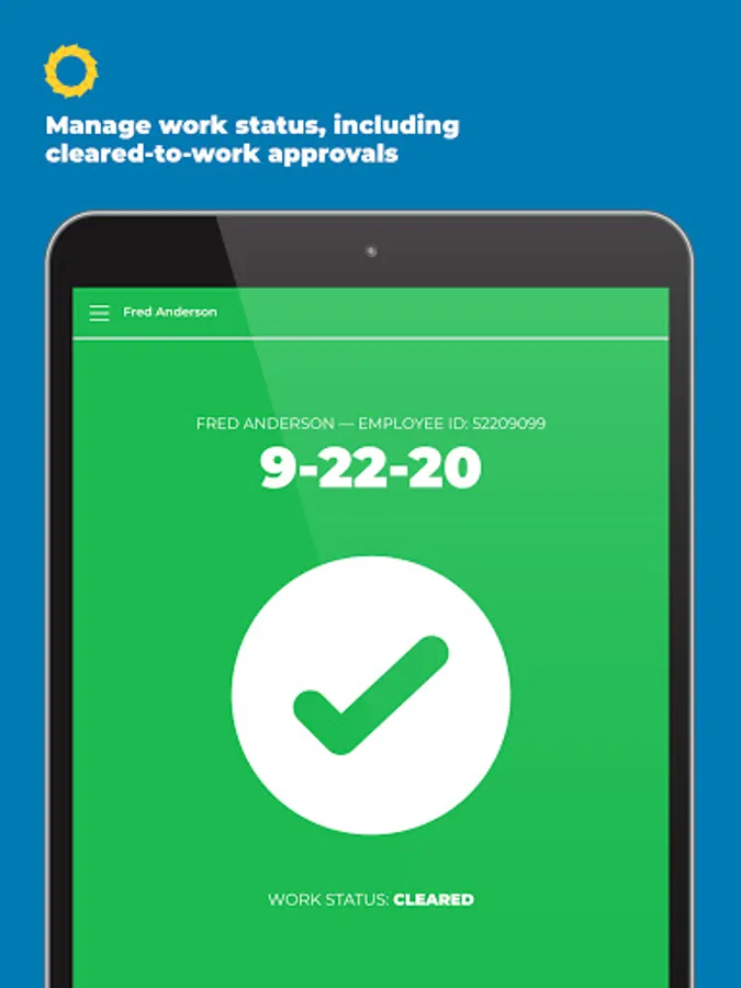 With the app, employees can securely connect to your organization’s employee health portal to electronically complete and submit questionnaires and manage work status, including automated receipt of cleared-to-work approval screen based on questionnaire responses.