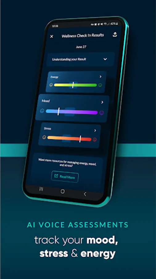 After recording your voice for just 20 seconds, Galvan’s AI analyzes your vocal biomarkers and gives you an assessment of your mood, stress, and energy levels.