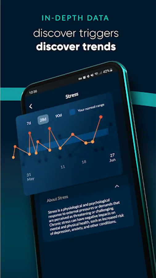The app will nudge you to do a Wellness Check In several times a week, allowing you to track your stress, mood, and energy levels over time and extract these very insights.