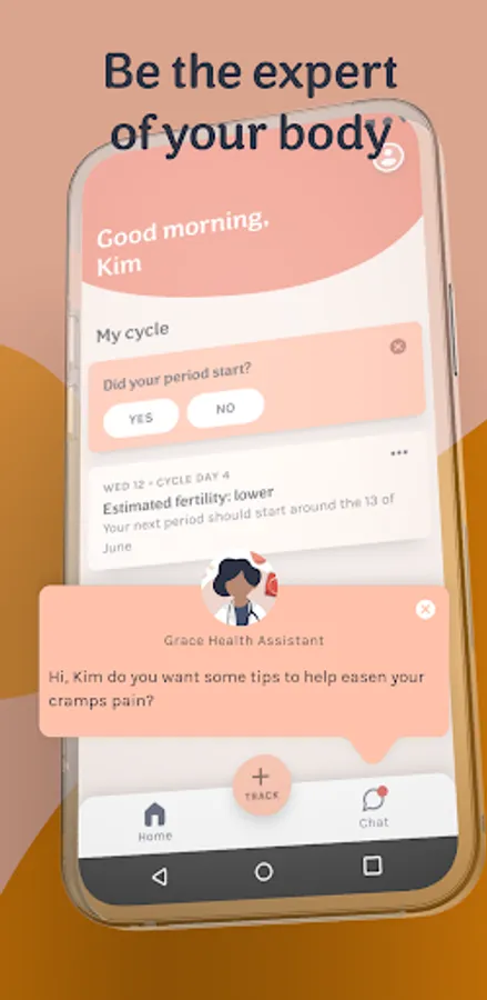 Grace helps you track your period, ovulation, PMS symptoms, and other health information so you get to know your body's cues and always know how you’re doing.