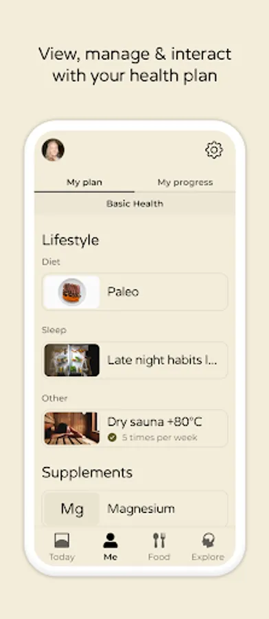 In the app, you will find detailed instructions and scientific information about different diets and associated food lists and recipes, as well as supplements, and other lifestyle changes. There are also broader educational materials that give you a better understanding of how you can effectively use diet, sleep, and stress management to improve your health.