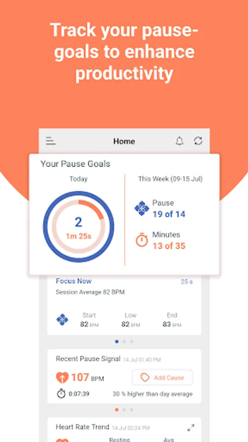 Measure heart rate during your conscious Pause (Breathing and Meditation):