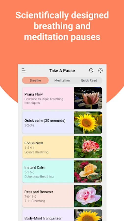 • Receive timely reminders to take a breathing and meditation pause, be it a work-meeting or stuck in a traffic-jam