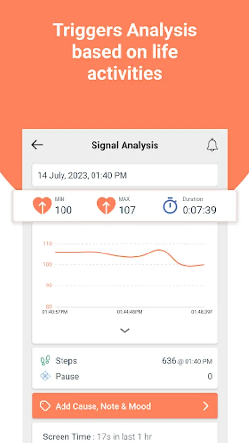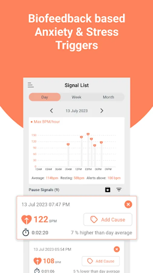 • Receive Pause signals on heart rate above set threshold value (for over a min).