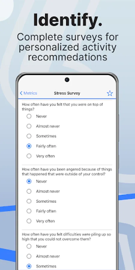 - Take surveys to measure symptoms of stress, anxiety, depression, and more.