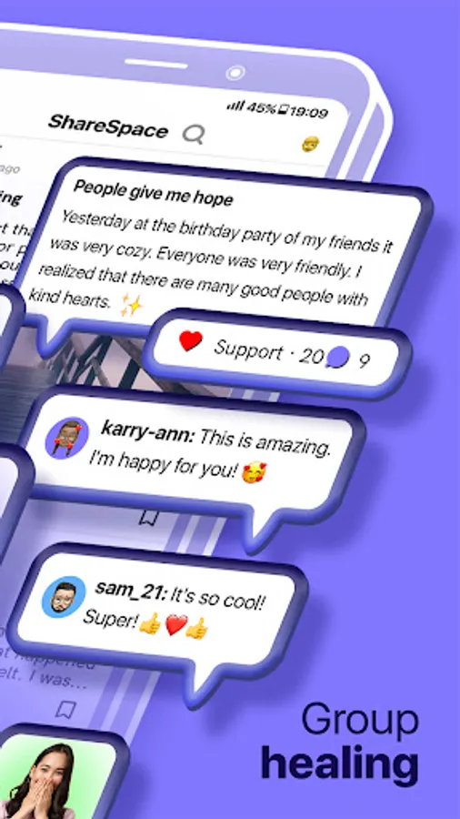 ShareSpace is the ultimate anxiety relief mental health community. Our health app was designed to give you tools to beat stress, anxiety, depression and turn negative feelings into positive. Allow you to boost your mindset, mood and overall mental health within an inclusive community filled with mutual support and advice.