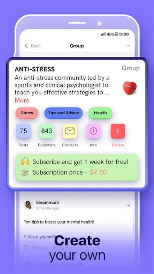 Our mental health and wellbeing community shows support in more ways than one. ShareSpace Groups is a useful online tool that can be helpful when online or traditional therapy is not an option. Groups allow people to get support, guidance, mental help and mental health exercises from self improvement experts, psychologists, mental health activists and even just people who have a story to share. This is not a substitute for counseling or online therapy, but is a great method to boost your mood, mindset and motivation! Join groups led by community experts to feel proper support on your mental health journey in our health app.