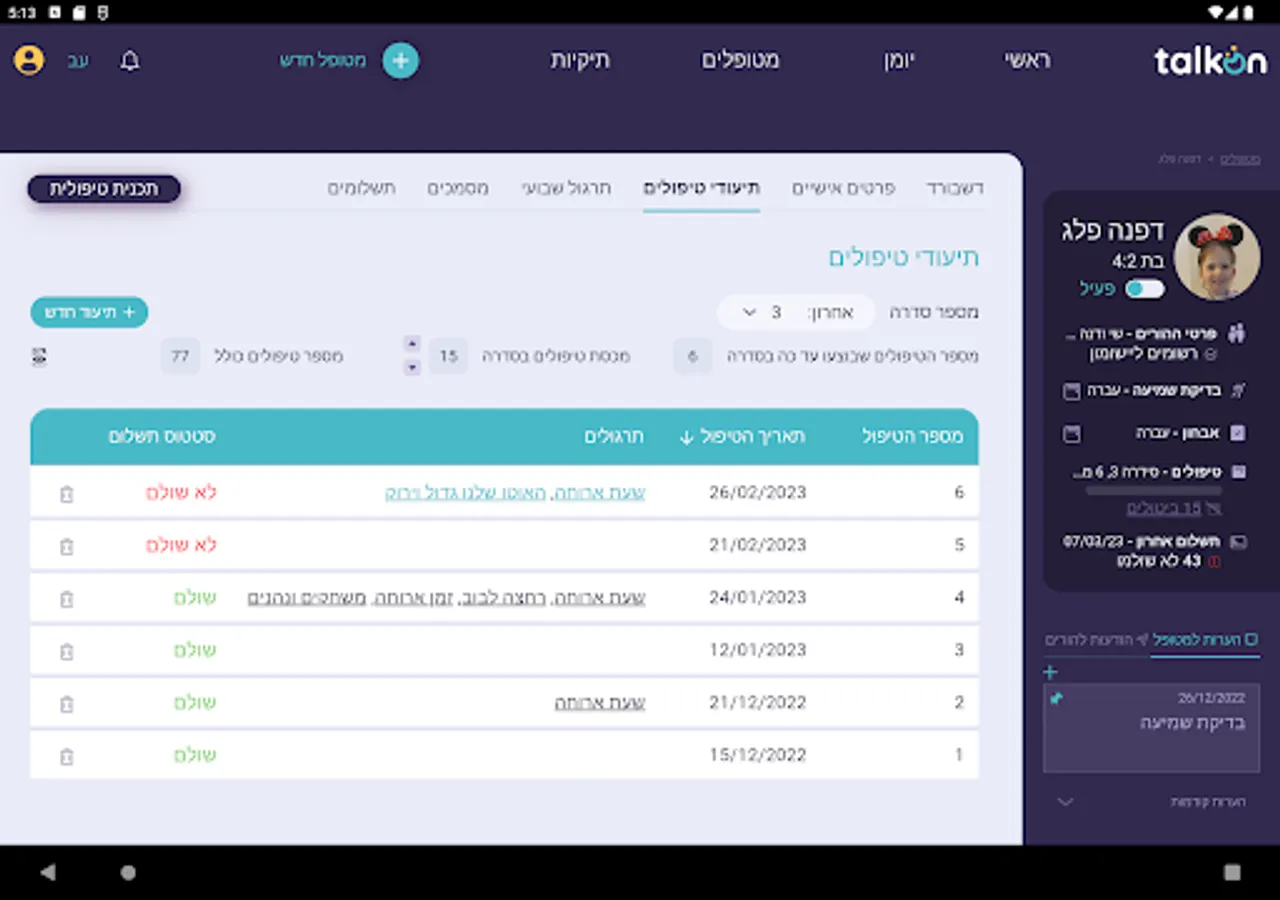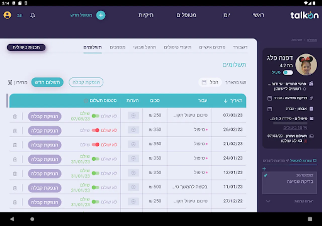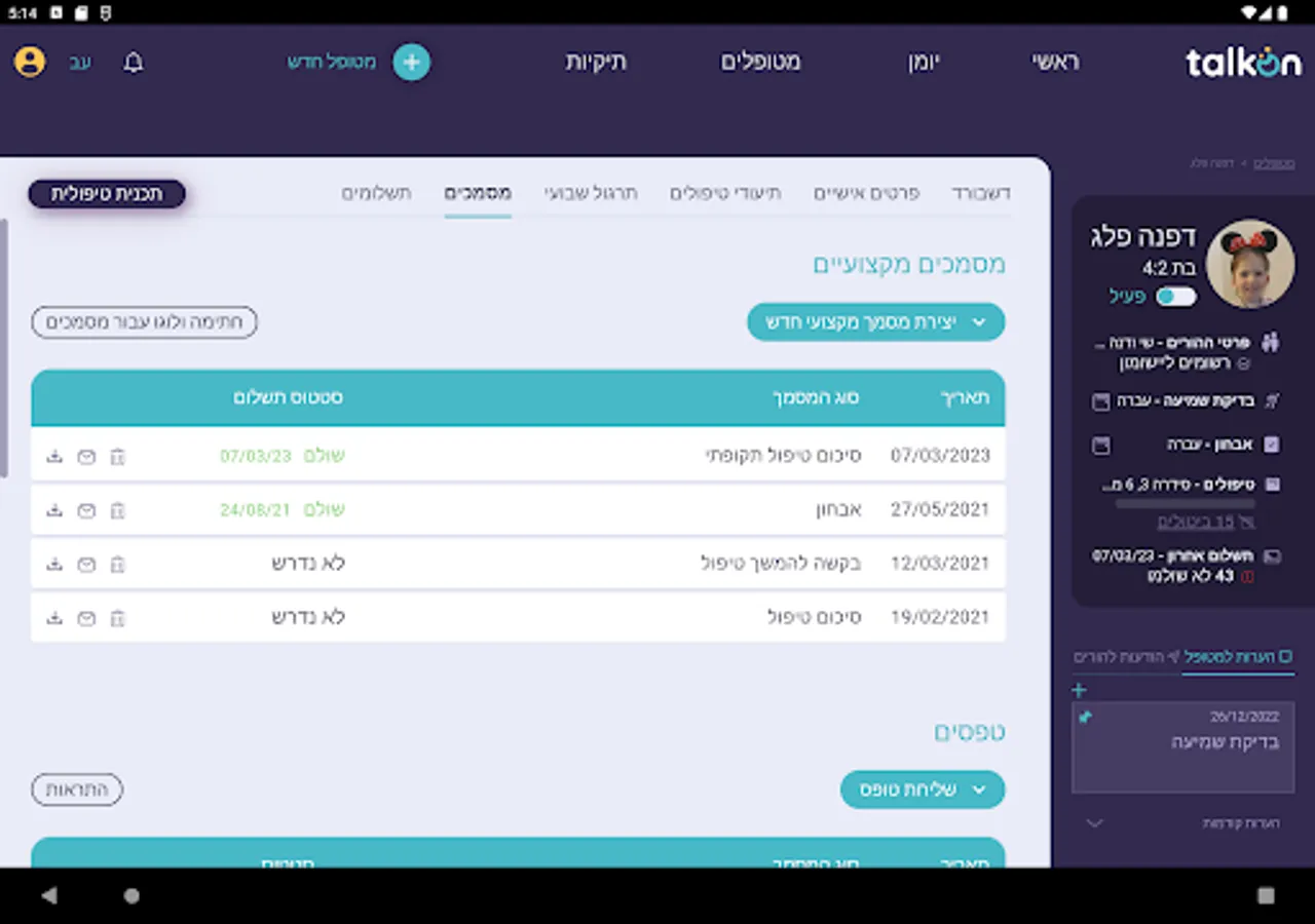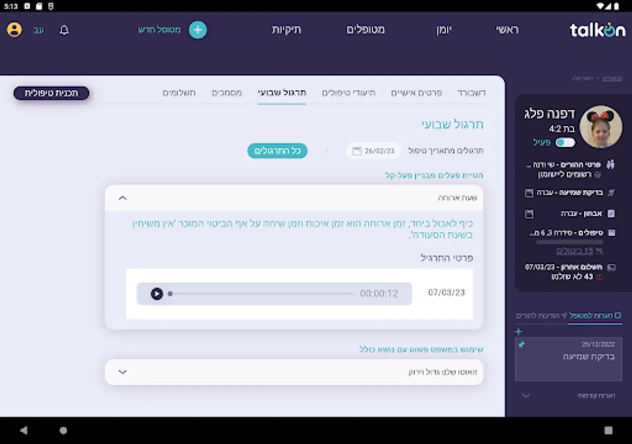 Talkon is an SLP (Speech-Language Pathology) software that streamlines administrative tasks and therapeutic processes, providing a full suite of administrative tools for SLPs. It empowers the therapy circle of therapist-parent-client and enables parents to receive ongoing feedback from the SLP through an integrated app. Talkon improves decision-making on the professional and managerial levels and saves precious time, making work significantly easier. With end-to-end management of clinical programs, Talkon is the perfect solution for SLPs looking to provide outstanding service with modern technology.