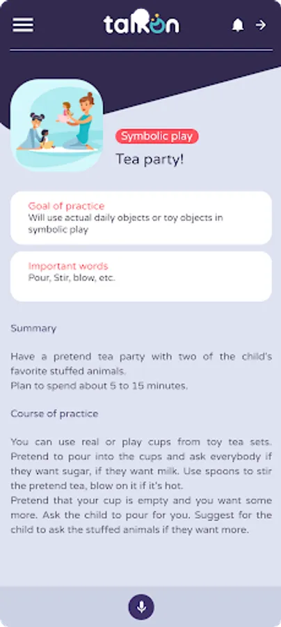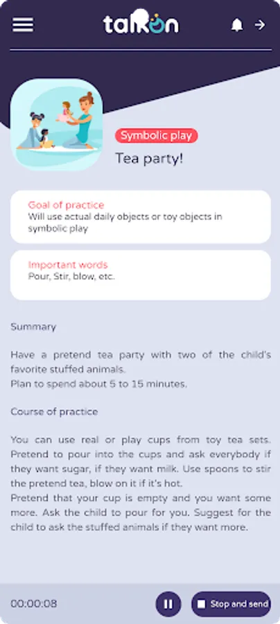The talkon app, developed by speech-language pathologists (SLPs) helps clients and caregivers practice speech therapy in an intuitive, fun way for faster results.