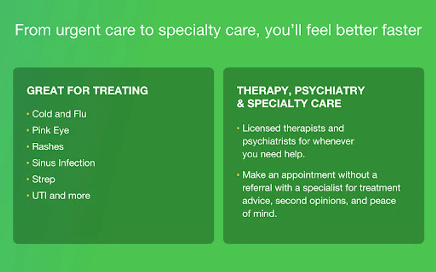 · You schedule sick and well visits when you need them, with up to three appointments per month.