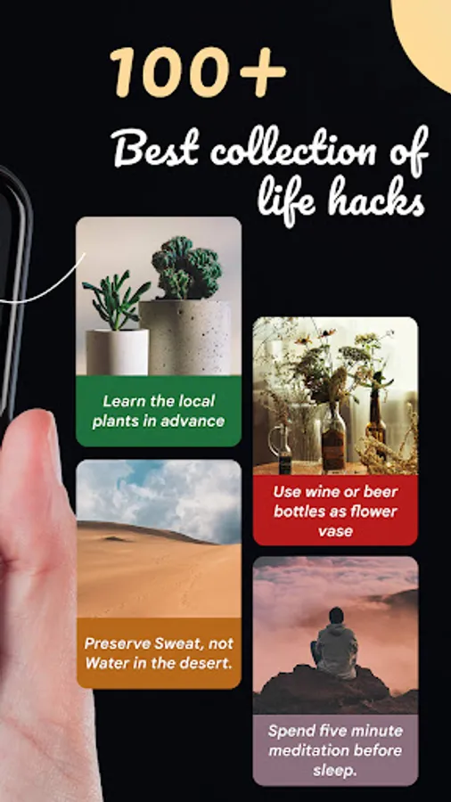 Psychology Facts - Life Hacks application will give you different category life tips and hacks to upgrade your knowledge and make your work easier. There is a huge collection of miscellaneous facts & tips in each category.